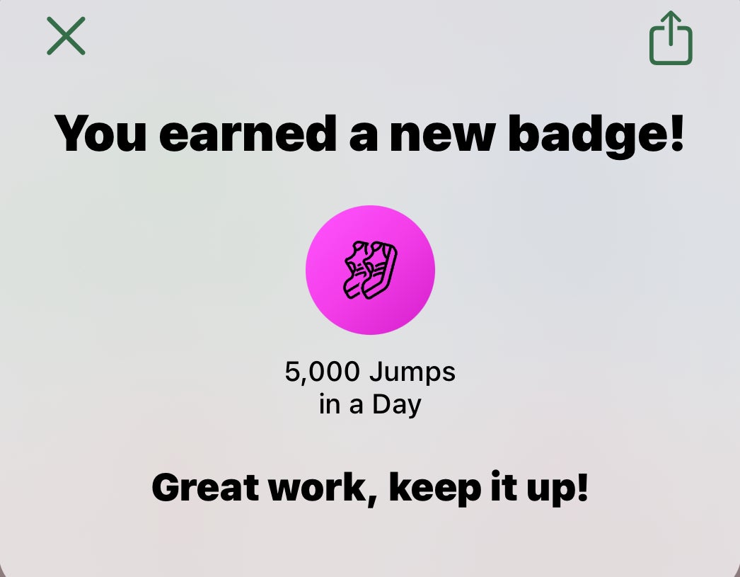 And just for fun and to see if I could do it (I knew I could π), I tried to be like Dan and do 5000 jumps. And I did! After the WOD, I just did another 1000 jumps in 8:55 min. I also thought I should comment on Danβs math. Iβm struggling to figure out how he can do 200 jumps in 1 min when the fastest he was jumping was about 170 jpm. π€