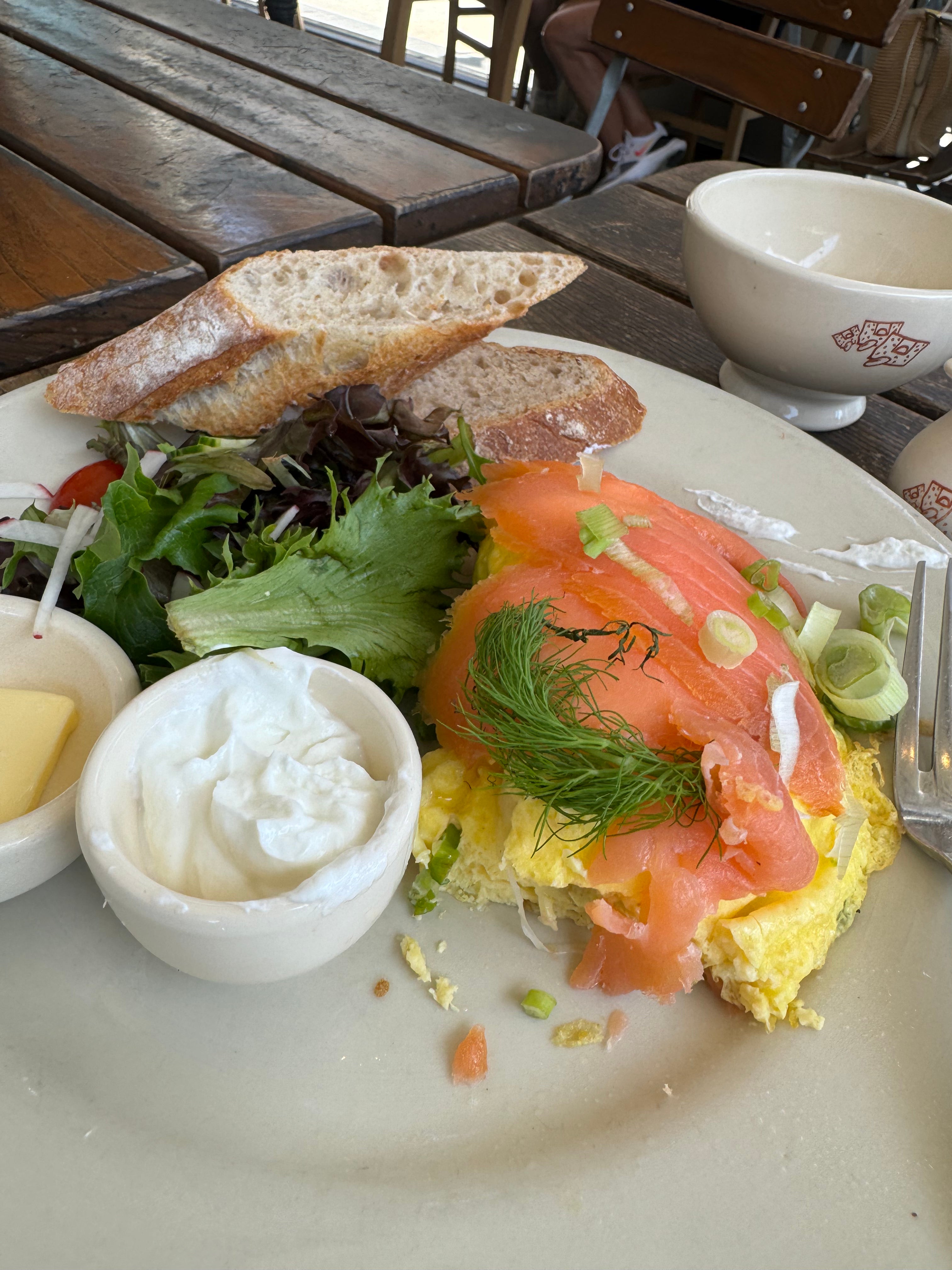 Breakfast today. Salmon Greek yogurt and cheese omelette. Lots of protein and delicious bread to pair with it. Keep it simple. Don’t overeat. Prioritize protein. Move ur body. Hope everyone has a great weekend!