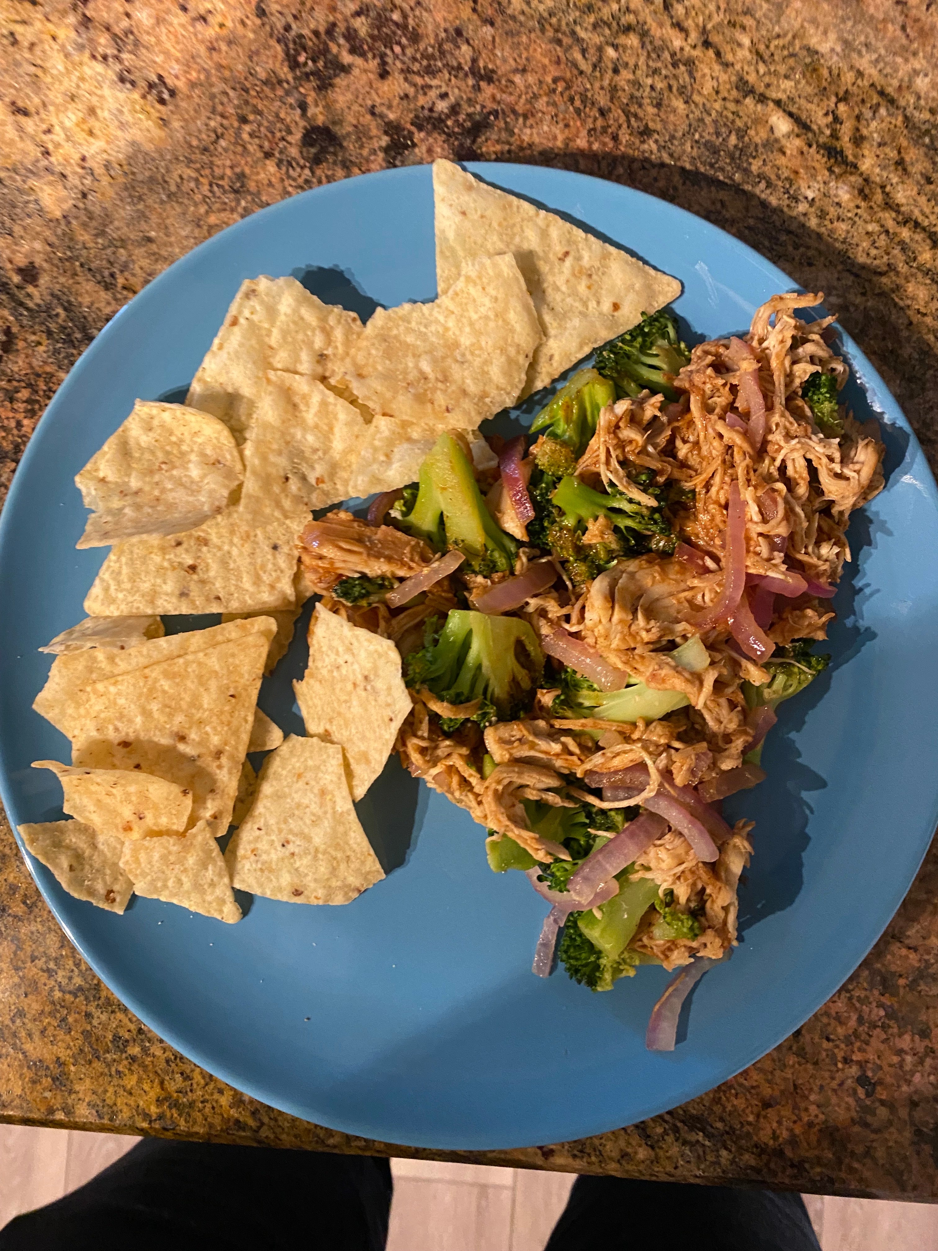 BBQ sauce, broccoli (I looove broccoli), onions and tortilla chips? I wanted something crunchy.