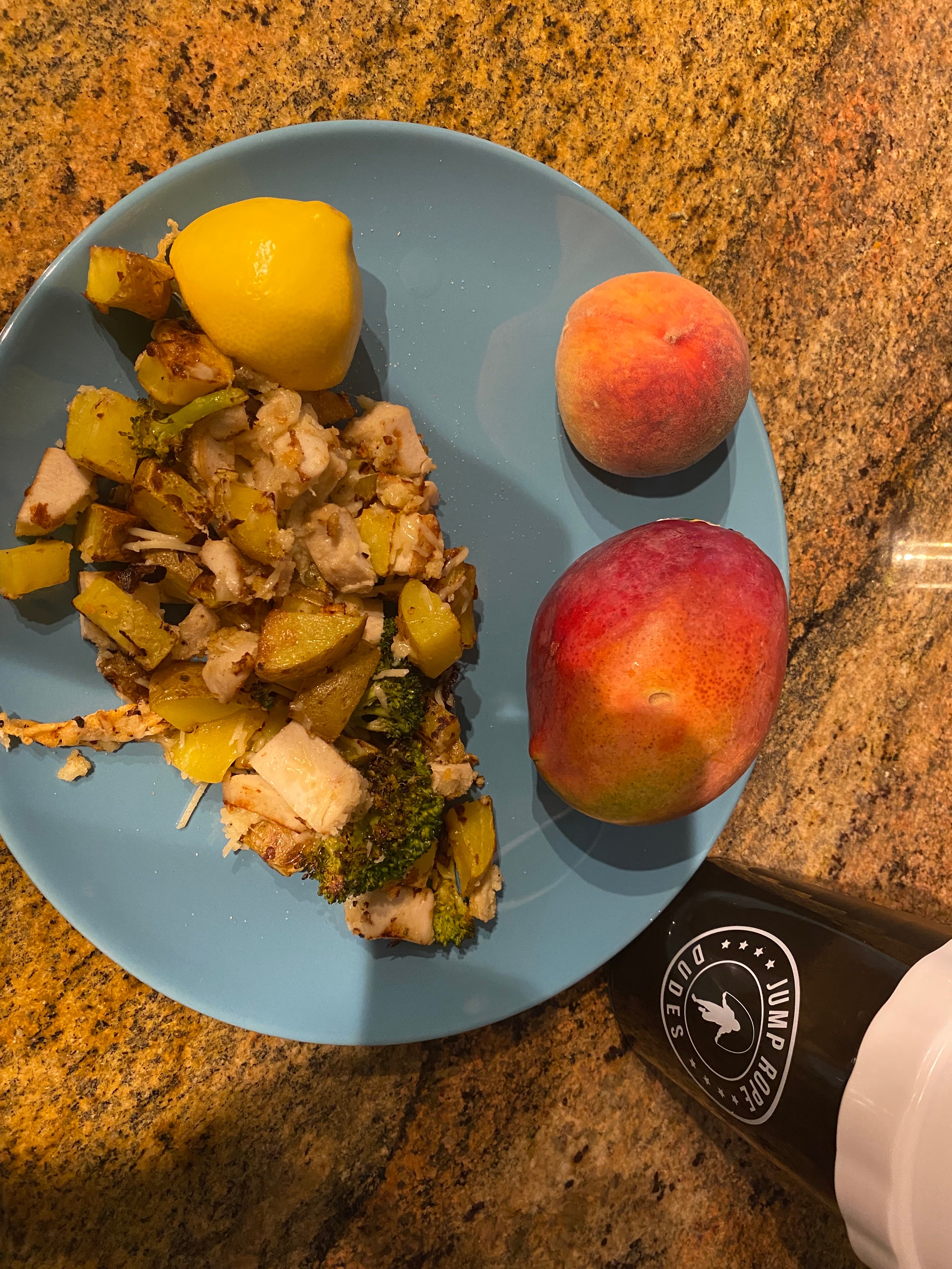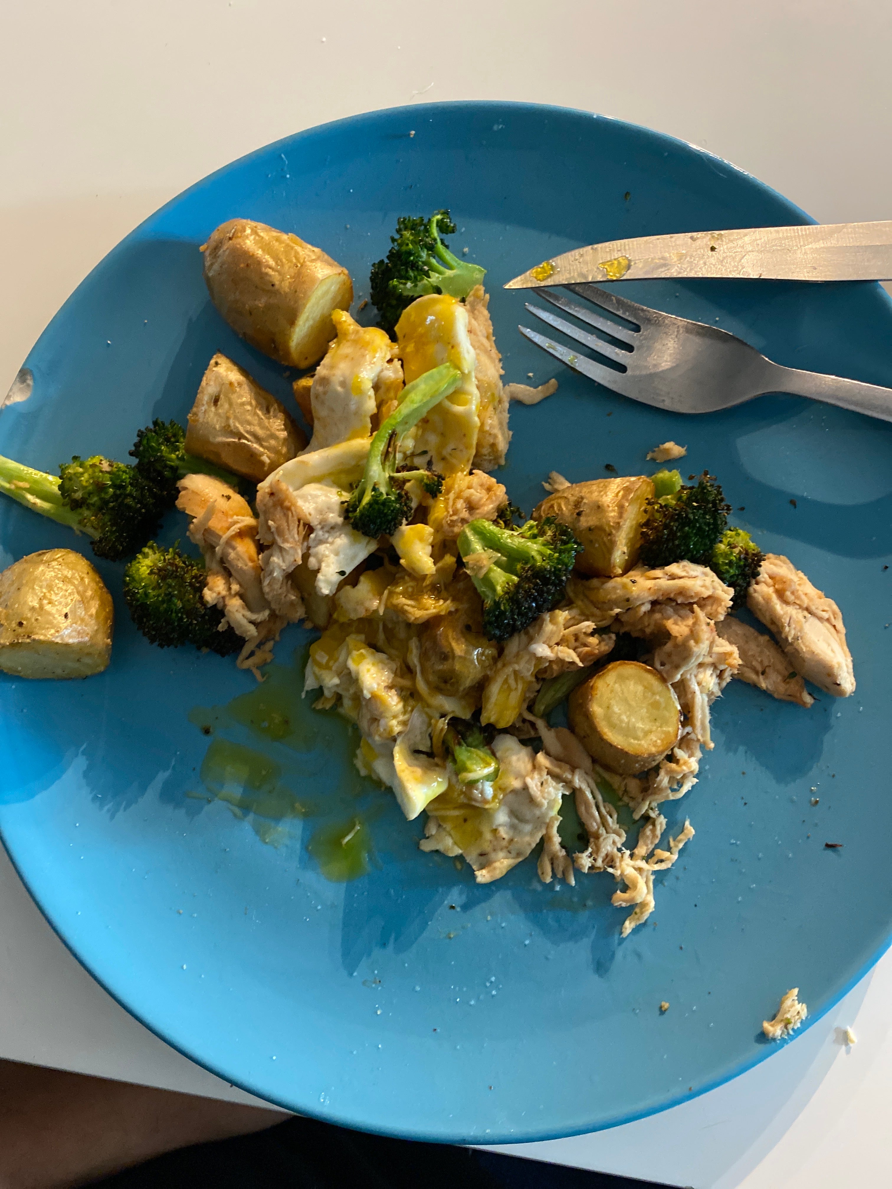 Last nights leftovers… baked and breaded lemon garlic chicken, roasted yukon taters and broccoli…