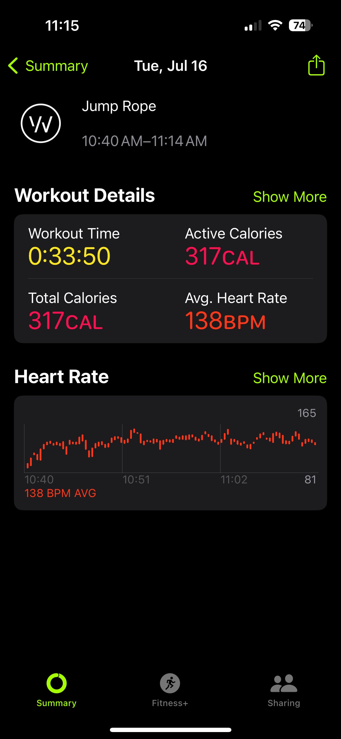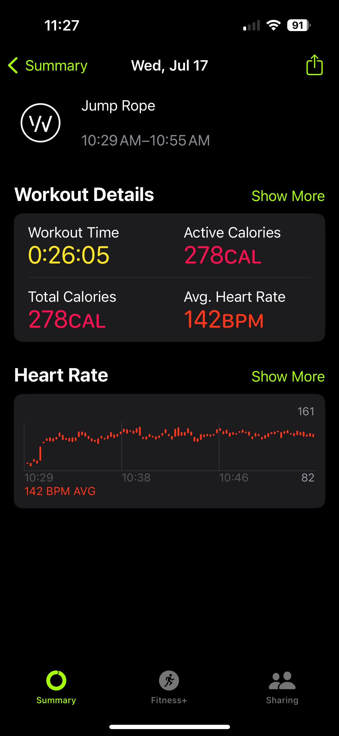 Summer Shred W3D1 ✅. I’m new to jump roping and started this challenge as my first intro to jump rope. Those 1 minute intervals on the jump rope portion were tough but was able to get through. Got to 100 jumps with the 1/2 lbs before needing a break or messing up.
