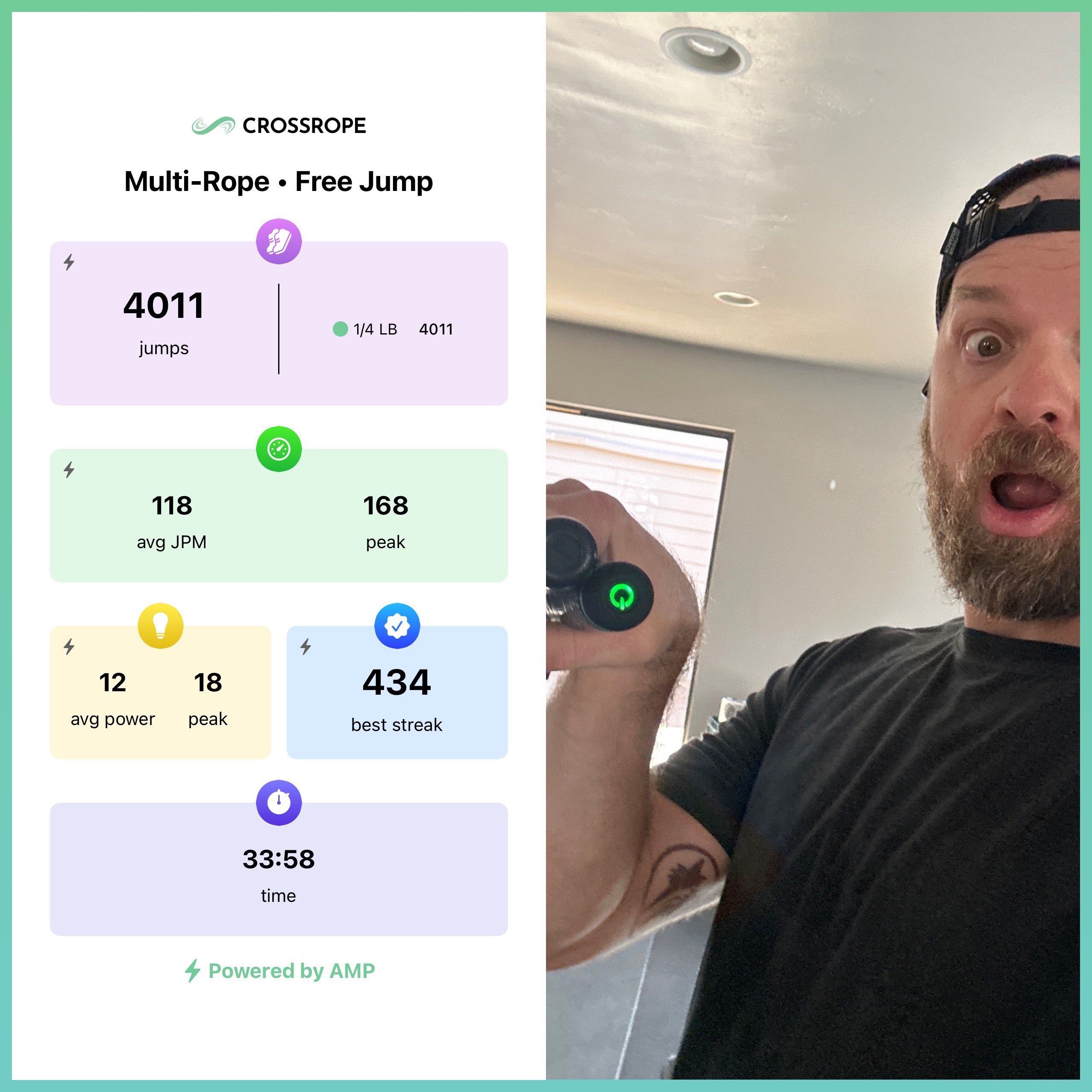 TorchMe: W2D1- Holy Dang! Three months into jump roping, and this might’ve been the hardest day yet. Yes, adding an extra quarter pound to the rope definitely made it harder but back to back double unders, ouch! I watched Dan’s double under tutorial today and decided to do double unders with 2 to 4 skips in between before doing the next one. Was definitely feeling more confident by the end of the workout. Don’t stop till you get enough!